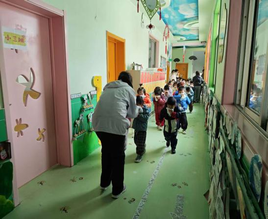 10点随着警报铃声的响起,各班教师及幼儿立即停止活动,并迅速用湿毛巾捂住口鼻。各班幼儿在老师的带领下,弯腰低姿,沿着预定疏散路线进行安全撤离,到达操场后迅速清点人数,确定是否有人员遗漏,并上报领导小组。