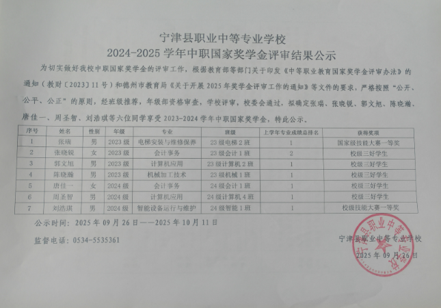 关于做好2025年中等职业教育国家奖学金评审发放和材料报送工作的通知